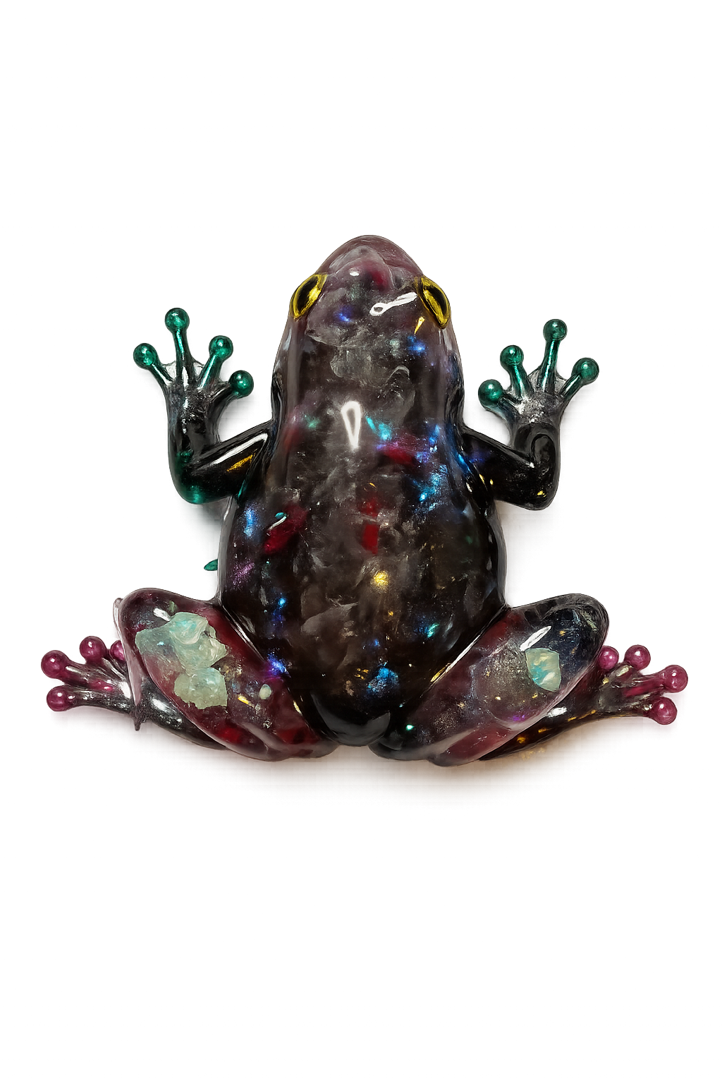 Add a bold, eye-catching touch to your space with this handcrafted resin frog figurine, featuring a deep, cosmic-inspired design with shimmering iridescent colors embedded throughout.